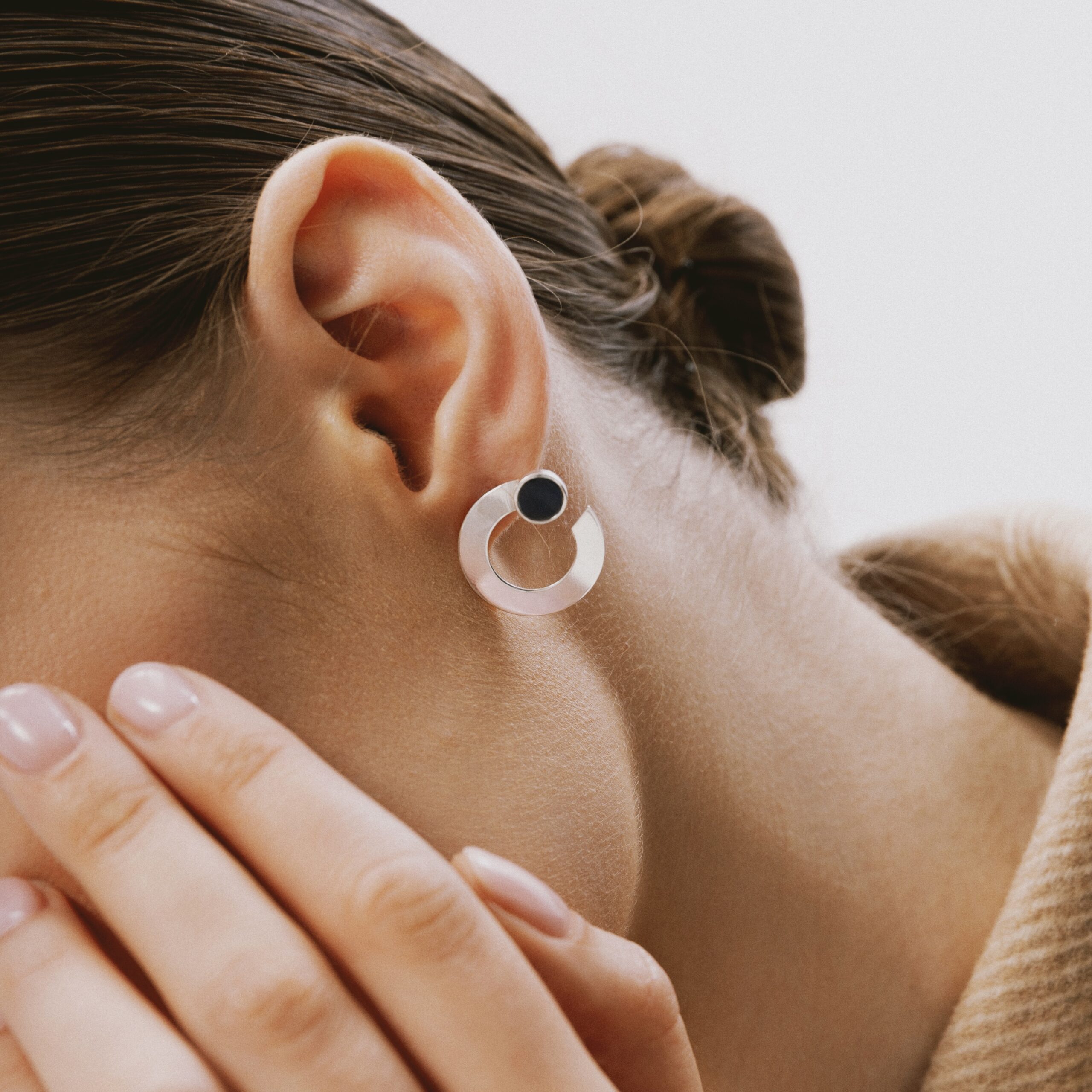 Kolczyki z obręczą z czarnym próbnikiem | Kolekcja Essentials