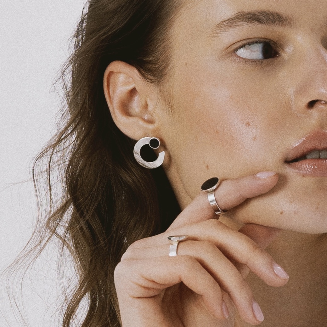 Kolczyki sztyfty z czarnym próbnikiem | Kolekcja Essentials