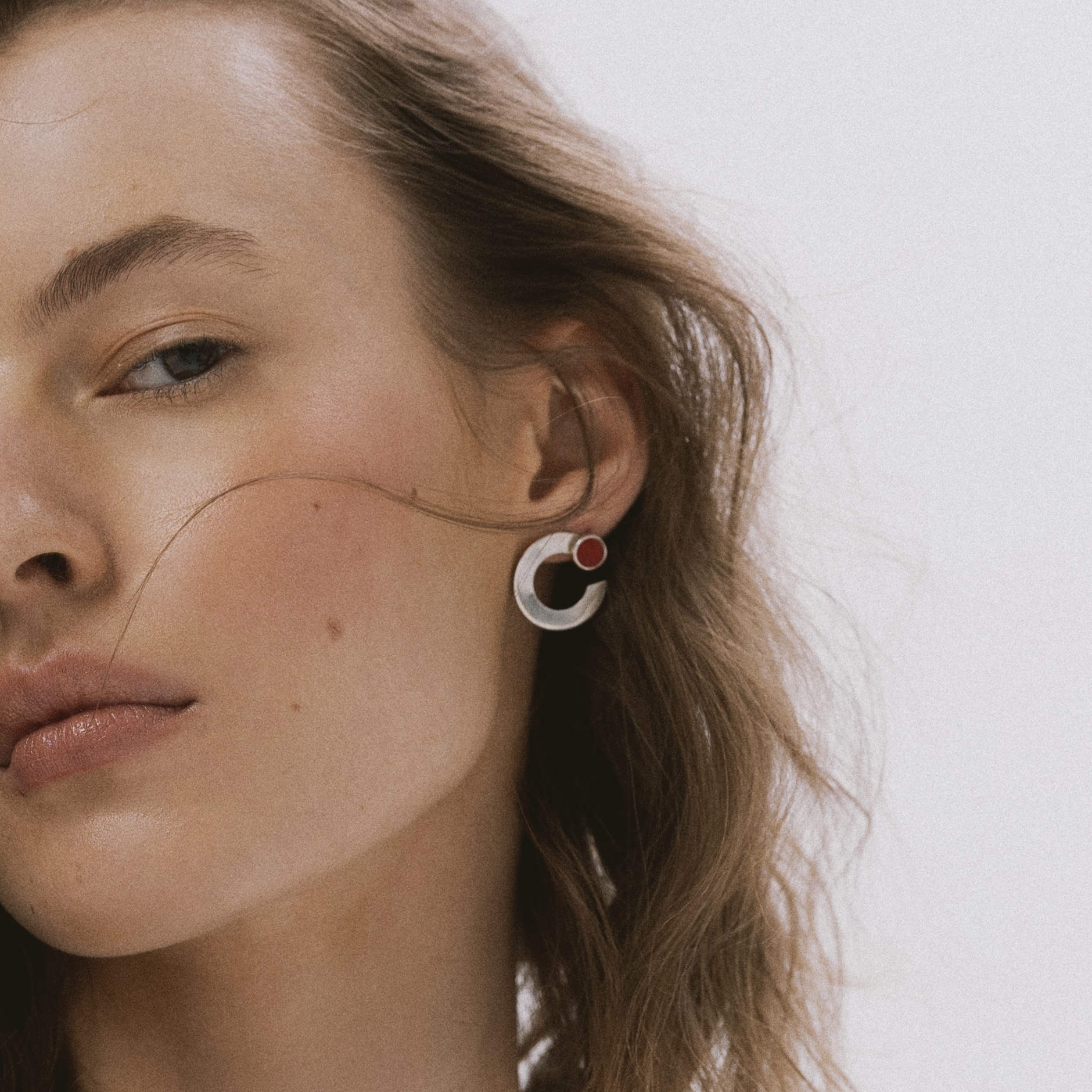 Kolczyki z obręczą z czerwonym próbnikiem | Kolekcja Essentials
