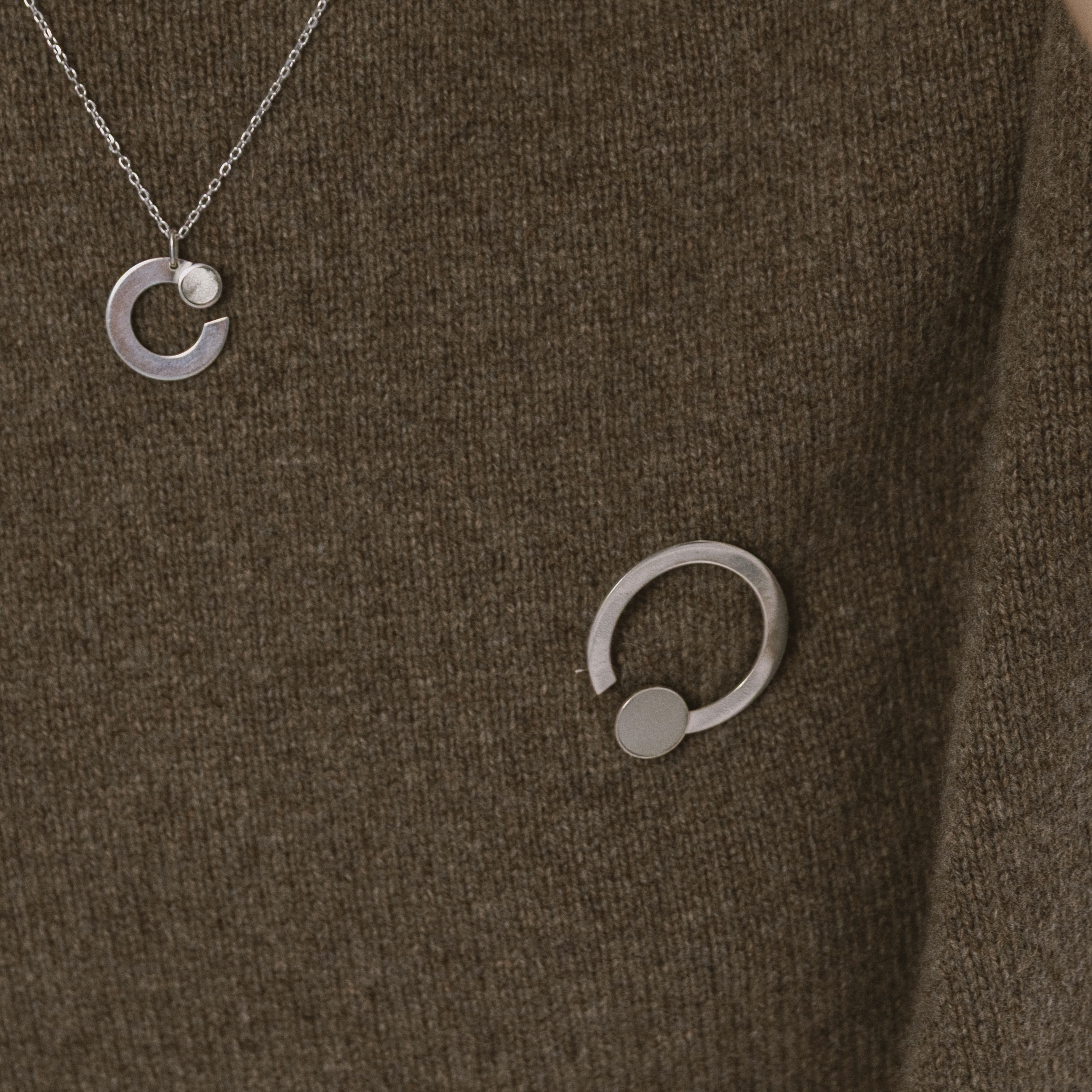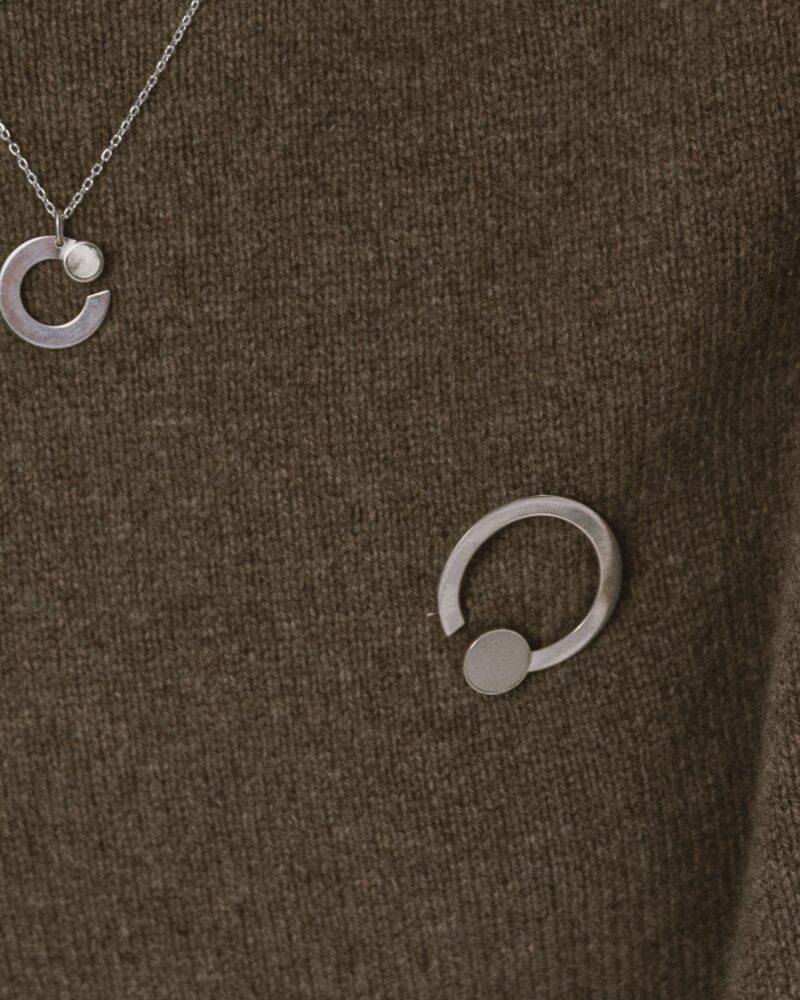 Elegancka broszka wykonana ze srebra próby 925 oraz srebrnego próbnika lakieru. Idealne zupełnienie swetrów oraz marynarek. Subtelna, minimalistyczna i pasująca do wielu stylizacji. Broszka została wykonana ręcznie przez pracownię jubilerską w Trójmieście.